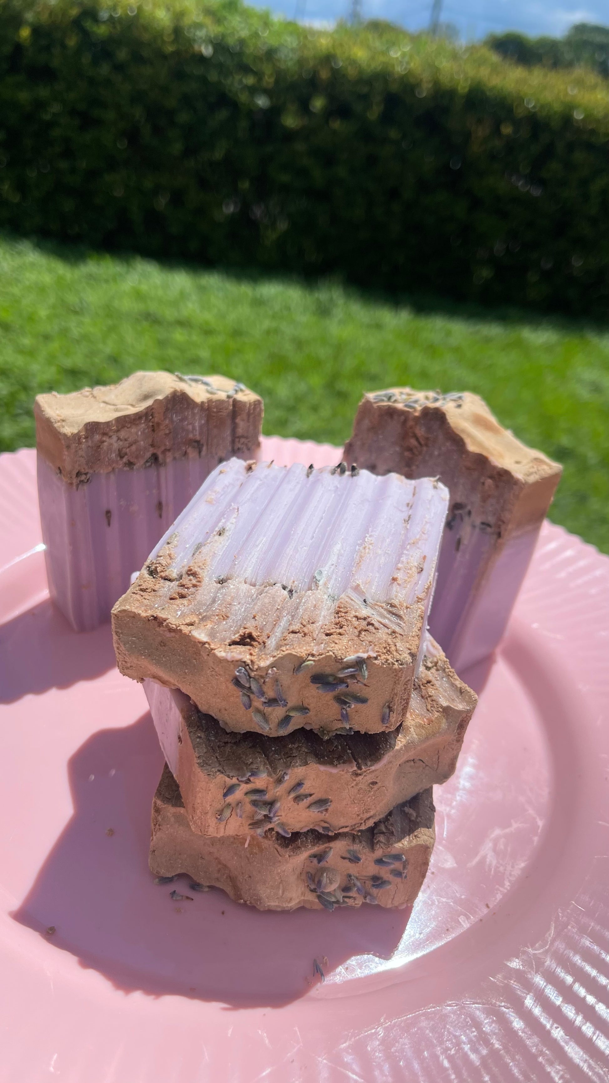 Ingredients: Olive Oil, Coconut Oil, Titanium Dioxide, Mica, Dried Lavender, and Grape seed Oil.