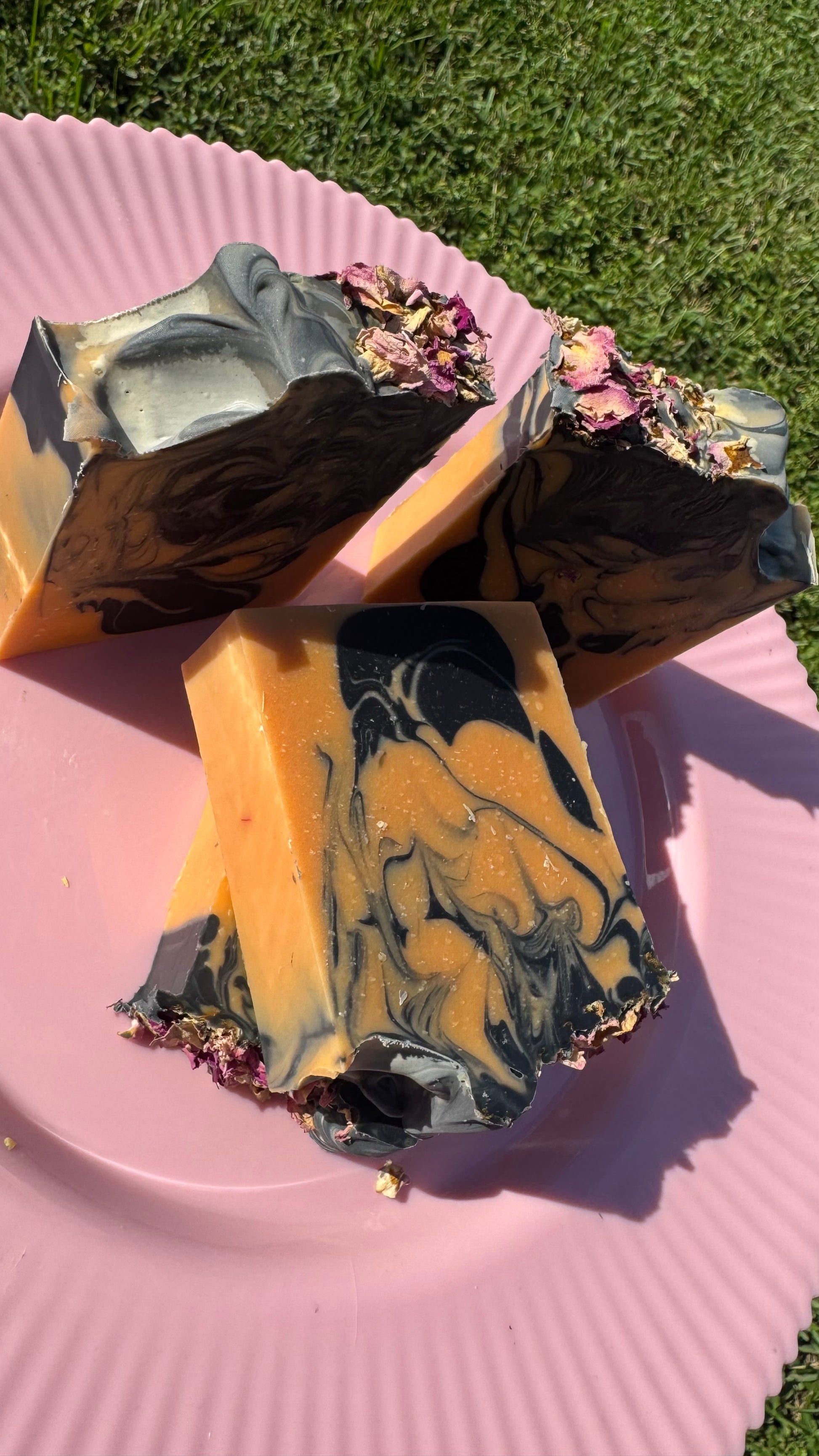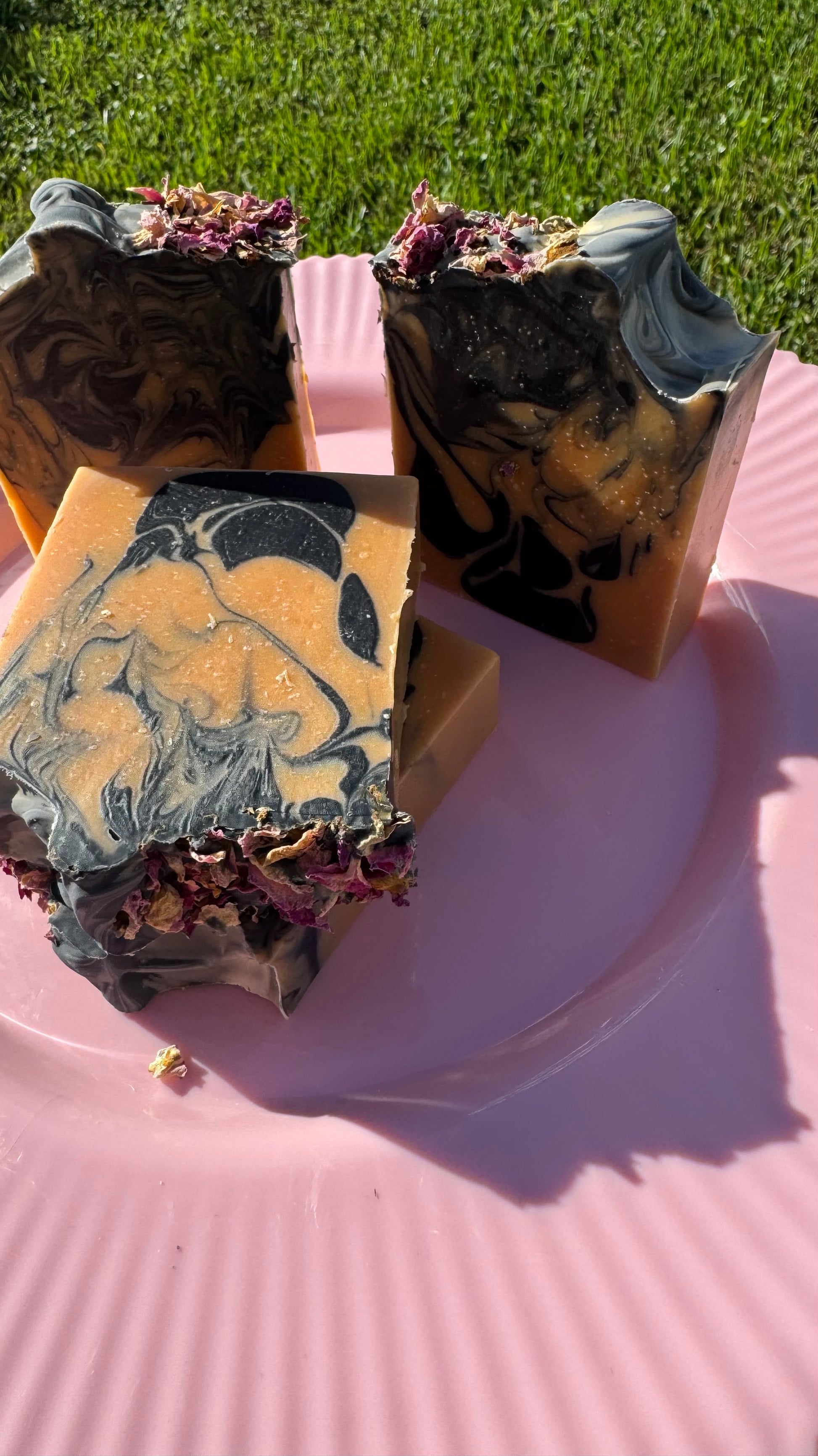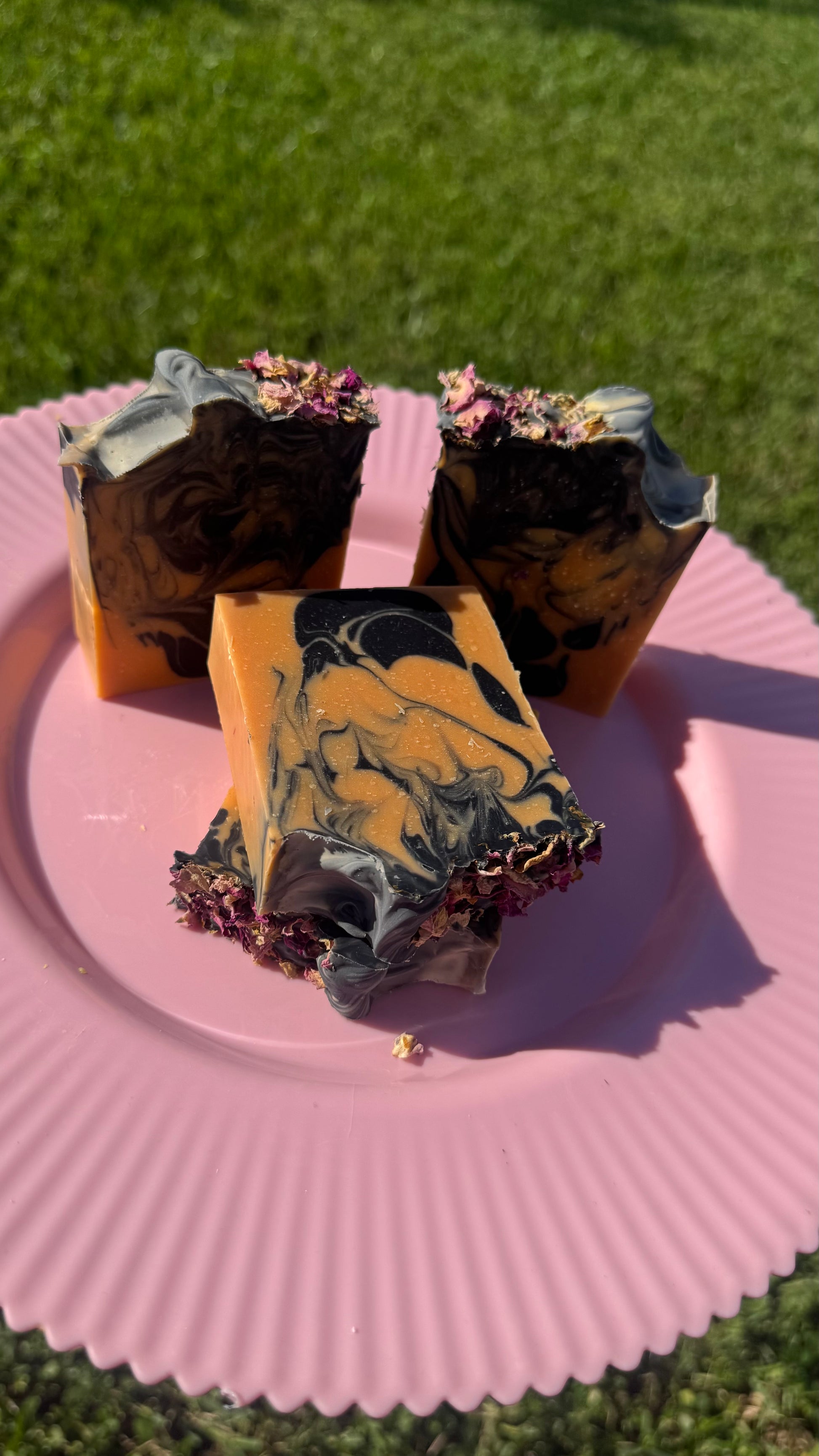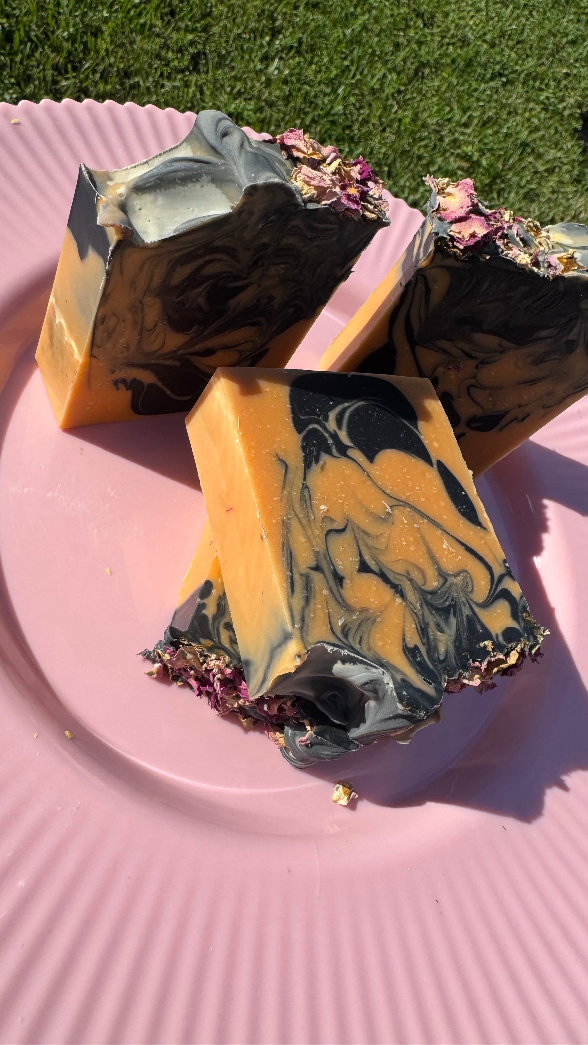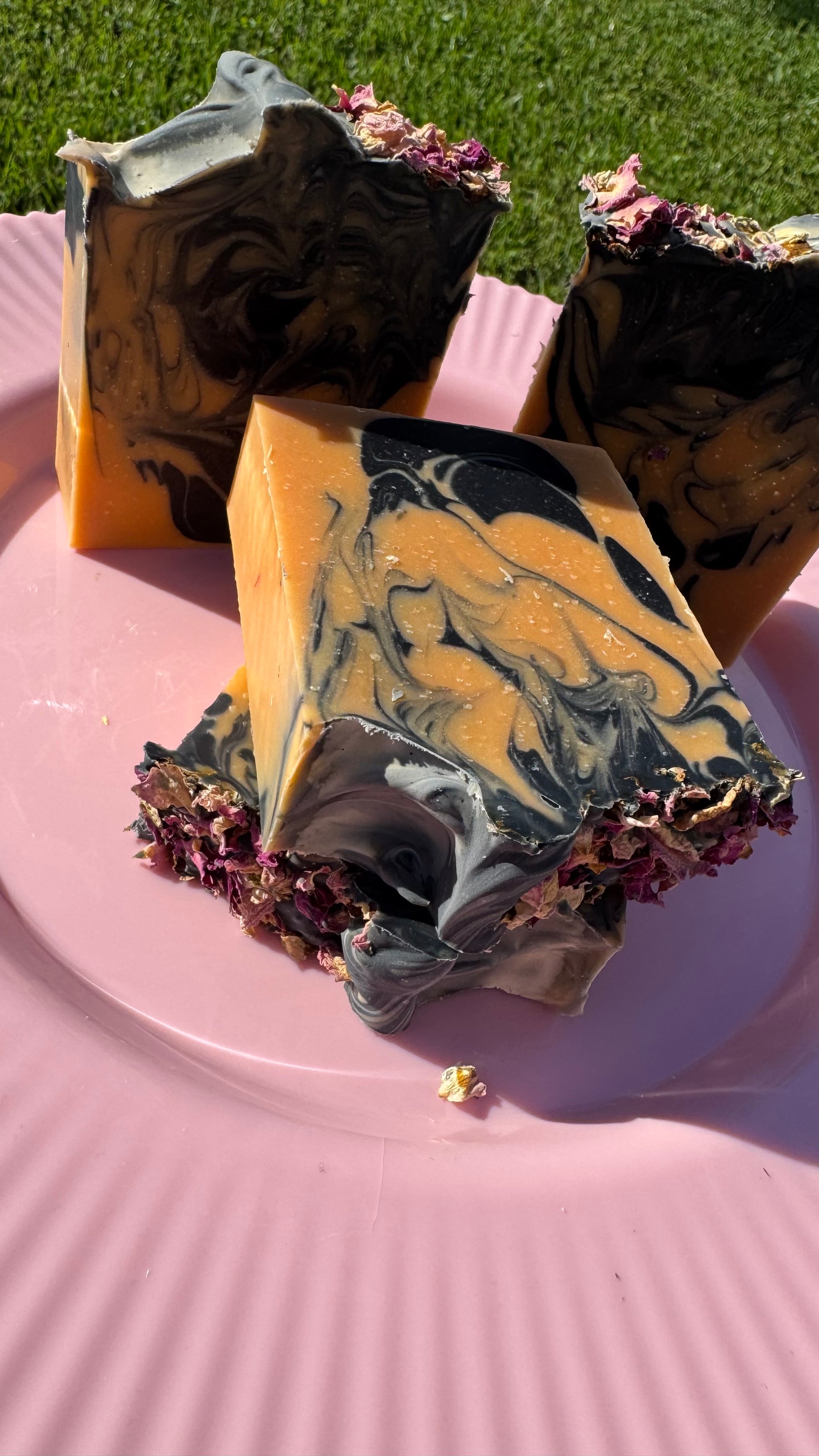 Ingredients: Olive oil, coconut oil, sunflower seed oil, palm Oil, vitamin E, black oxide, and dried pink rose petals