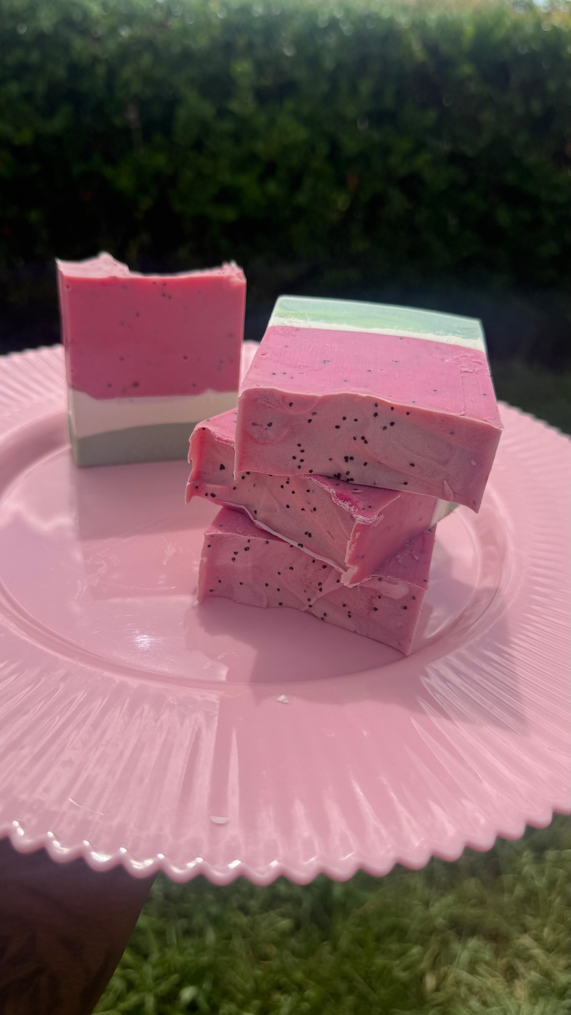 Introducing our Yacht Vibes Artisan Soap a playful yet luxurious nod to summer nostalgia. Inspired by the iconic Jolly Rancher watermelon candy, this soap bursts with a mouthwatering, sweet watermelon aroma that instantly transports you back to carefree childhood days.