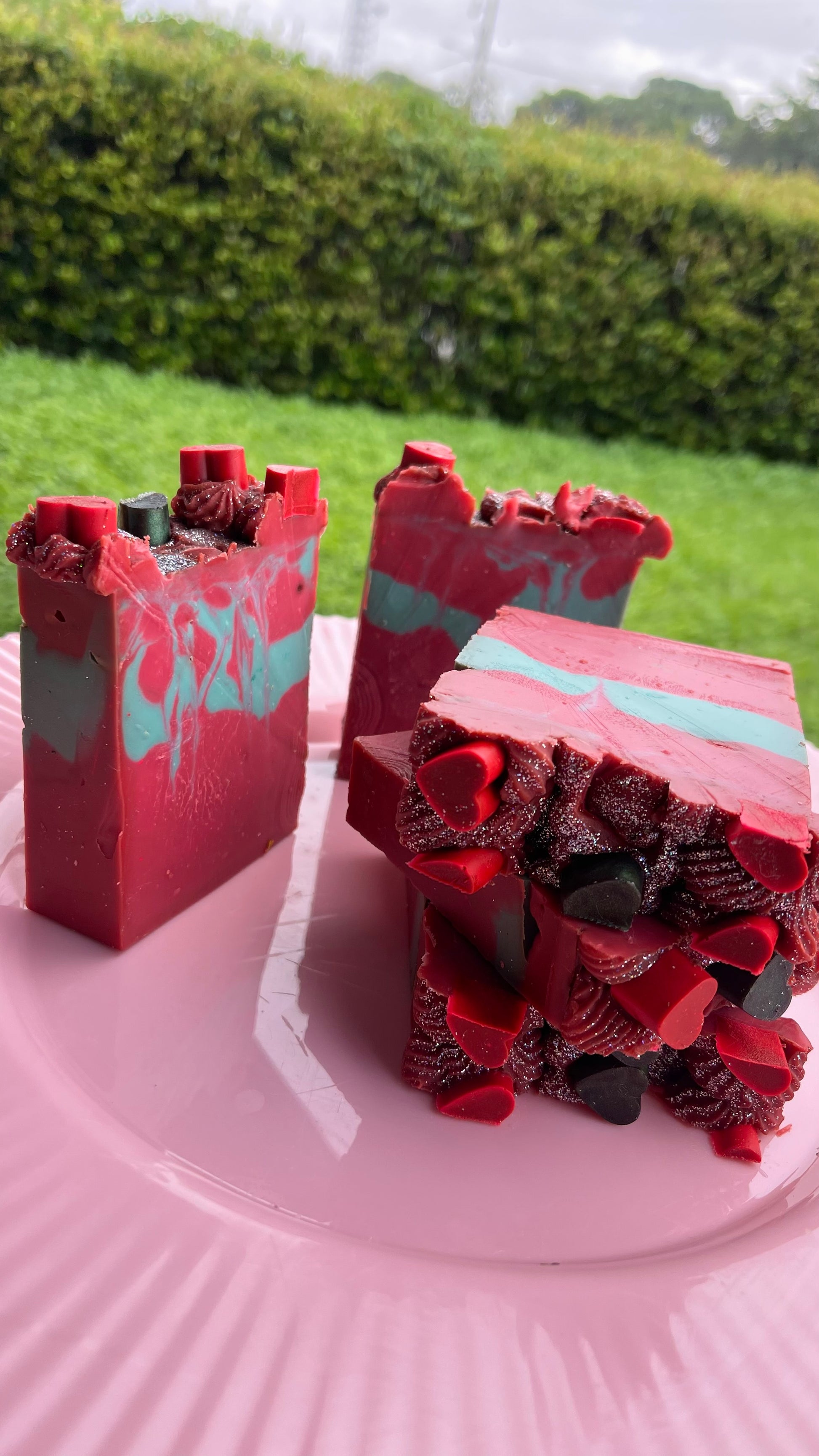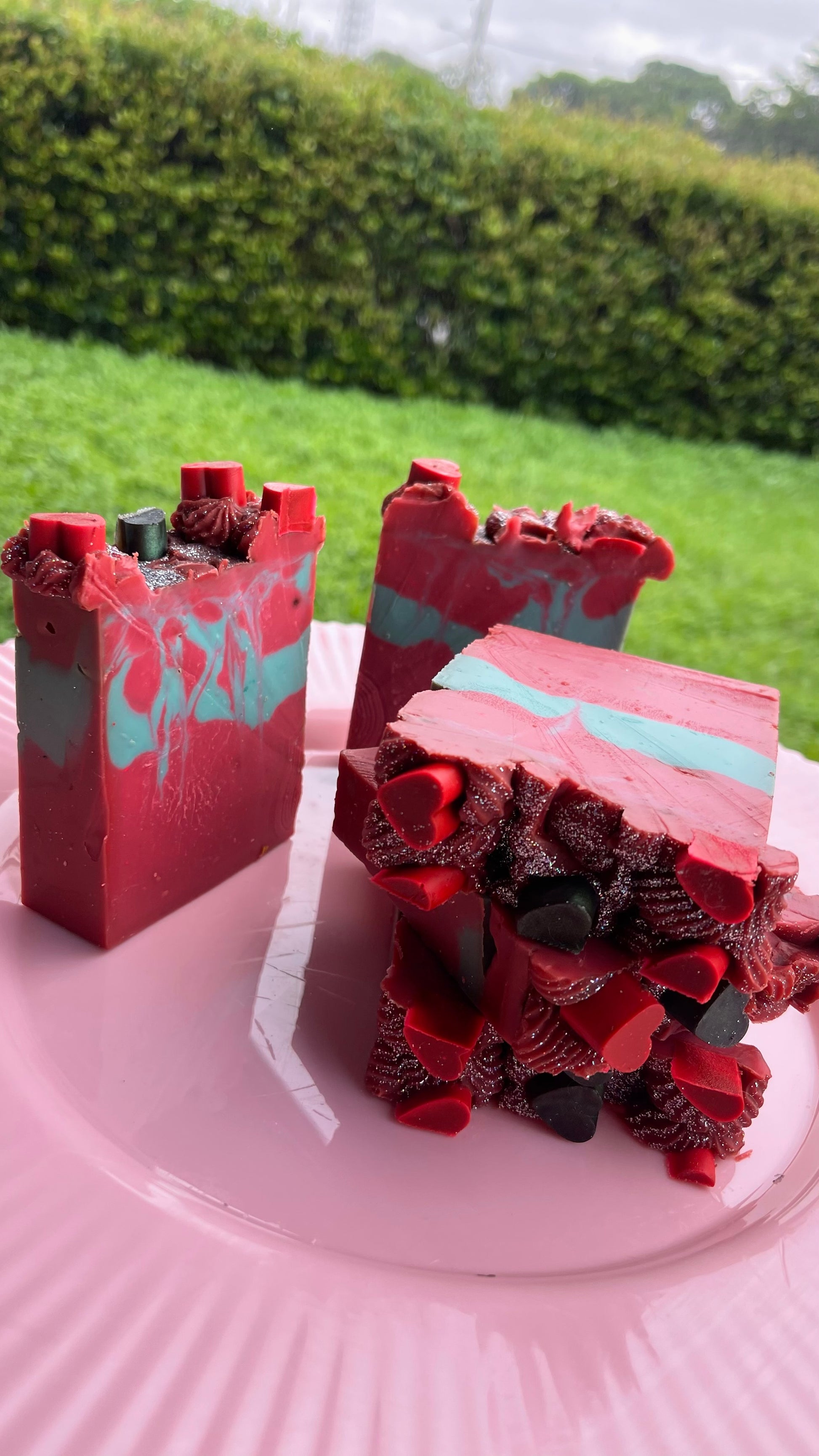 Step into luxury with this warm vanilla sugar escape. Sweet, golden notes of vanilla swirl with soft caramelized sugar, wrapped in the rich look of maroon red and light blue layers with a frosted, glittering top. The eco-friendly glitter sparkles like city lights, then dissolves as you wash leaving only soft, luxe skin behind.